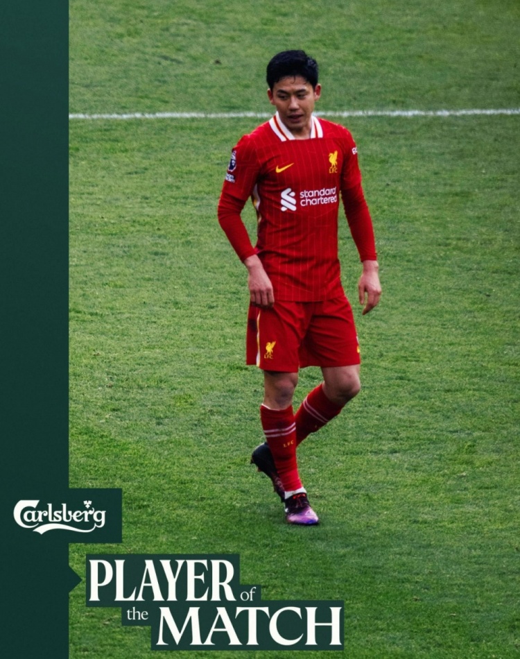 2月17日讯 英超第25轮,利物浦2-1击败狼队,7分优势领跑积分榜。赛后,替补登场的远藤航当选了红军队内最佳球员。
