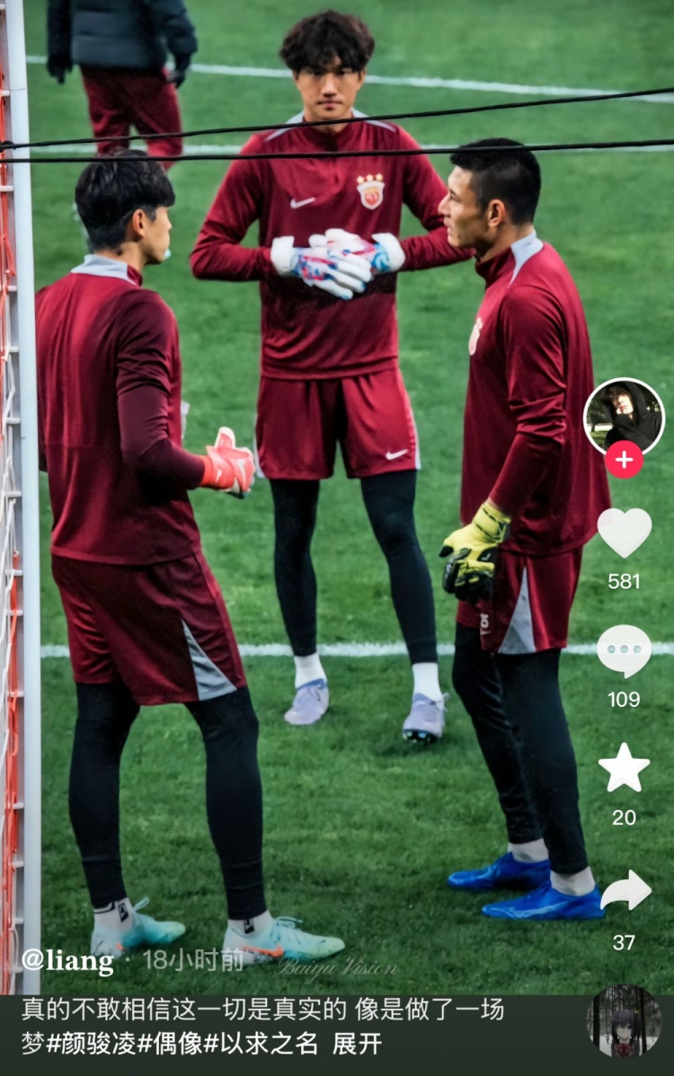 2月22日讯 17岁的海港门将李智良在社媒晒出了他与颜骏凌一同训练的照片,表示“像是做了一场梦”。